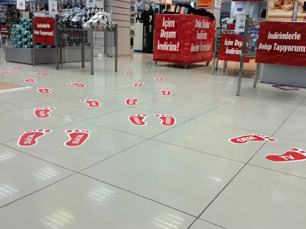 Floor grafikler, mağazalar, alışveriş merkezleri, havaalanları ve diğer halka açık alanlarda etkili bir reklam aracı olarak kullanılır. Ürün tanıtımları, kampanyalar ve markanın mesajları, zemine uygulanan grafiklerle müşterilere iletilir. Bu grafikler, müşterilerin dikkatini çekmek ve satın alma davranışını etkilemek için stratejik noktalara yerleştirilir.